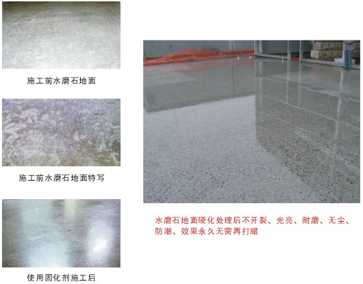 水磨石地面是眾多企業(yè)車(chē)間、倉(cāng)庫(kù)等所用材質(zhì)地坪,地面使用久后會(huì)有開(kāi)裂起塵起灰之現(xiàn)像影響企業(yè)生產(chǎn)及客戶(hù)看廠,而打蠟又需定期保養(yǎng)太繁瑣,無(wú)法徹底解決問(wèn)題。水磨石地面密封固化正是可以解決企業(yè)這方面的顧慮,水磨石地面固化處理后保持地面永久不需再打蠟和修補(bǔ)地面,且有防潮功能,地面硬度也在一定程度上增強(qiáng)了幾倍,經(jīng)過(guò)專(zhuān)業(yè)機(jī)械研磨從而使水磨石地面永久發(fā)出自然的大理石般亮度。地面豪華氣派彰顯無(wú)疑、耐抗壓防塵效果好,易于清潔。
